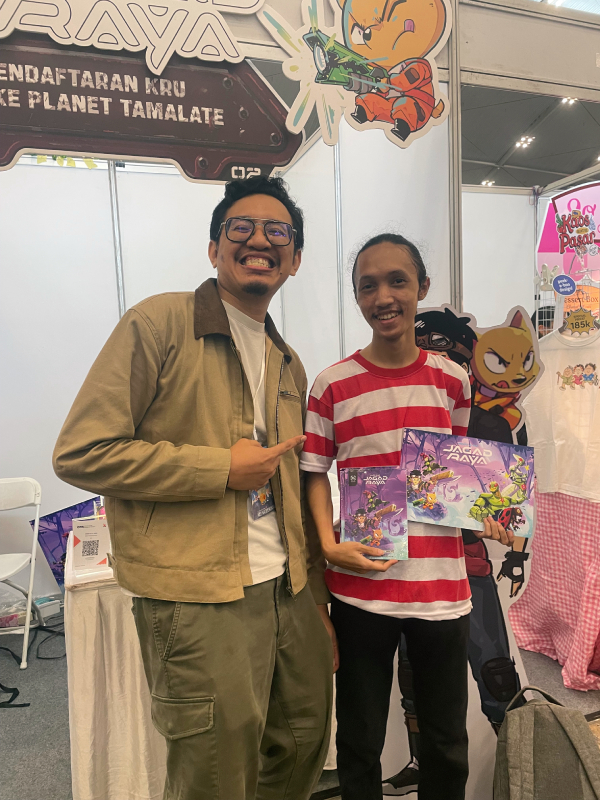 Setelah itu gue ke booth Jagad Raya yang letaknya gak terlalu jauh. Gue ketemu mas Shani Budi dan beli dua volume komik Jagad Raya yang dijual.