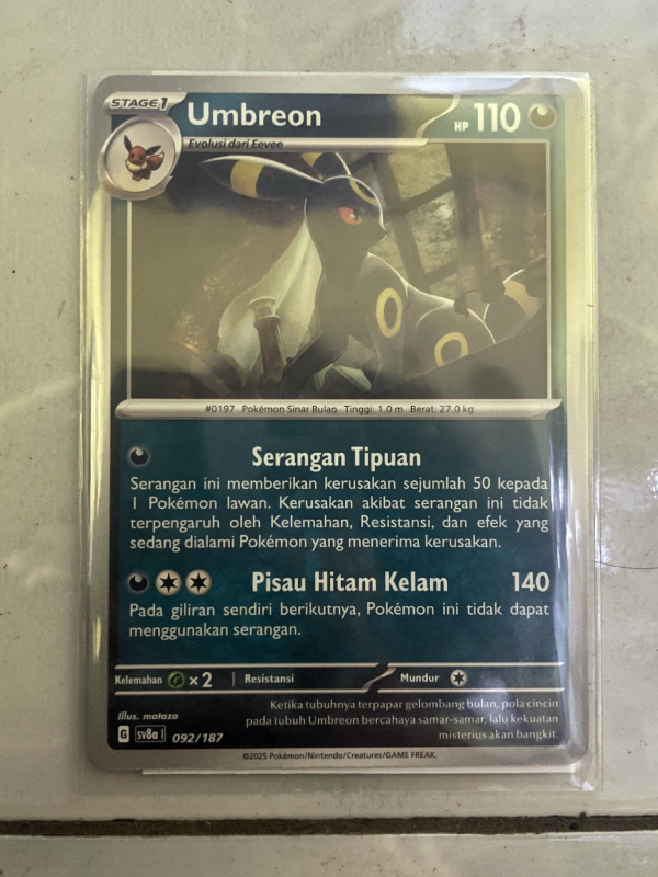 Kami juga mampir ke booth-nya Kani tapi dia udah gak ada. Pas lagi keliling, kami juga ketemu anak Fasilkom 2016, ada Danin, Aulia, sama Adrian. Danin ngasih gacha berupa kartu pokemon ke kami semua. Gue dapatnya kartu Umbreon.