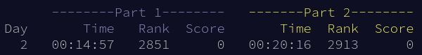 It's day 2 and I'm already feeling tired to write AoC post. I'm writing this post while half asleep and slowly typing with a lots of typo every three words.